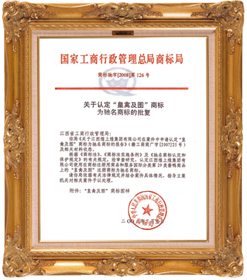 2008年3月5日,“皇禽及圖”注冊商標榮獲“中國馳名商標”