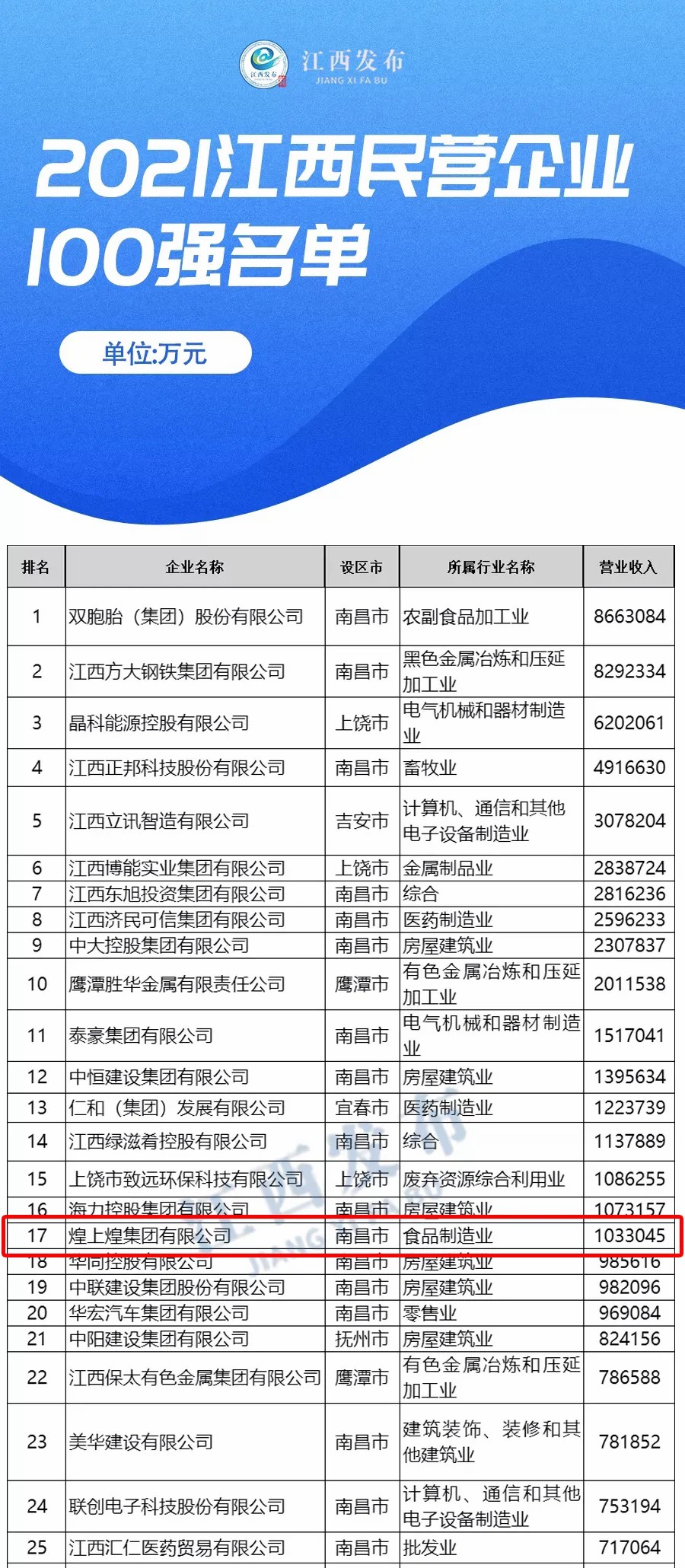 喜訊 | 煌上煌集團(tuán)斬獲2021“江西民營企業(yè)100強(qiáng)”“江西制造業(yè)民營企業(yè)100強(qiáng)”