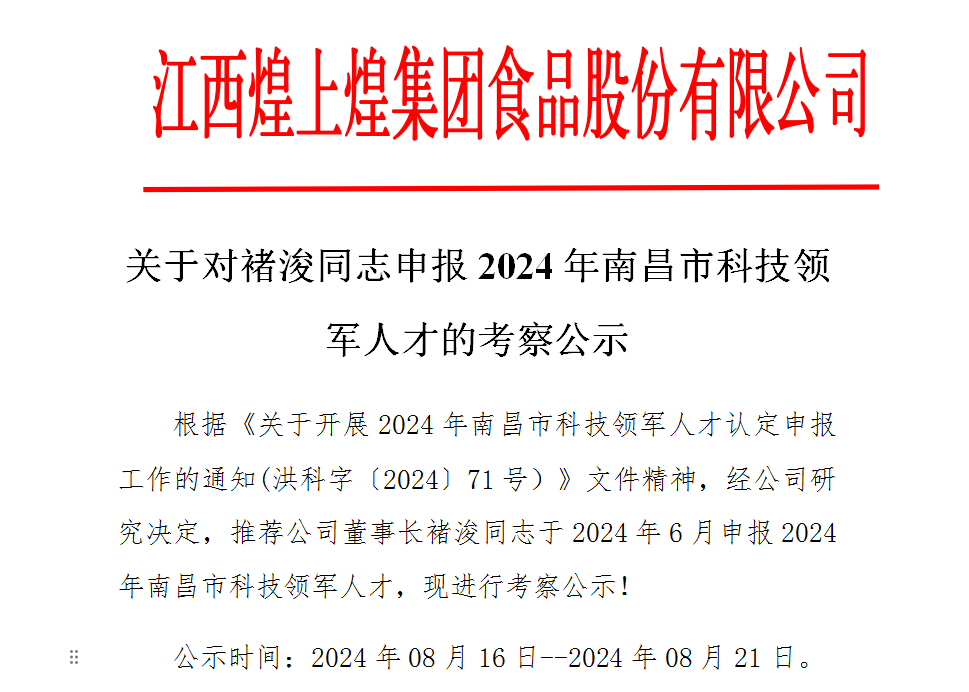 關(guān)于對(duì)褚浚同志申報(bào)2024年南昌市科技領(lǐng)軍人才的考察公示根據(jù)《關(guān)于開(kāi)展2024年南昌市科技領(lǐng)軍人才認(rèn)定申報(bào)工作的通知(洪科字〔2024〕71號(hào))...
