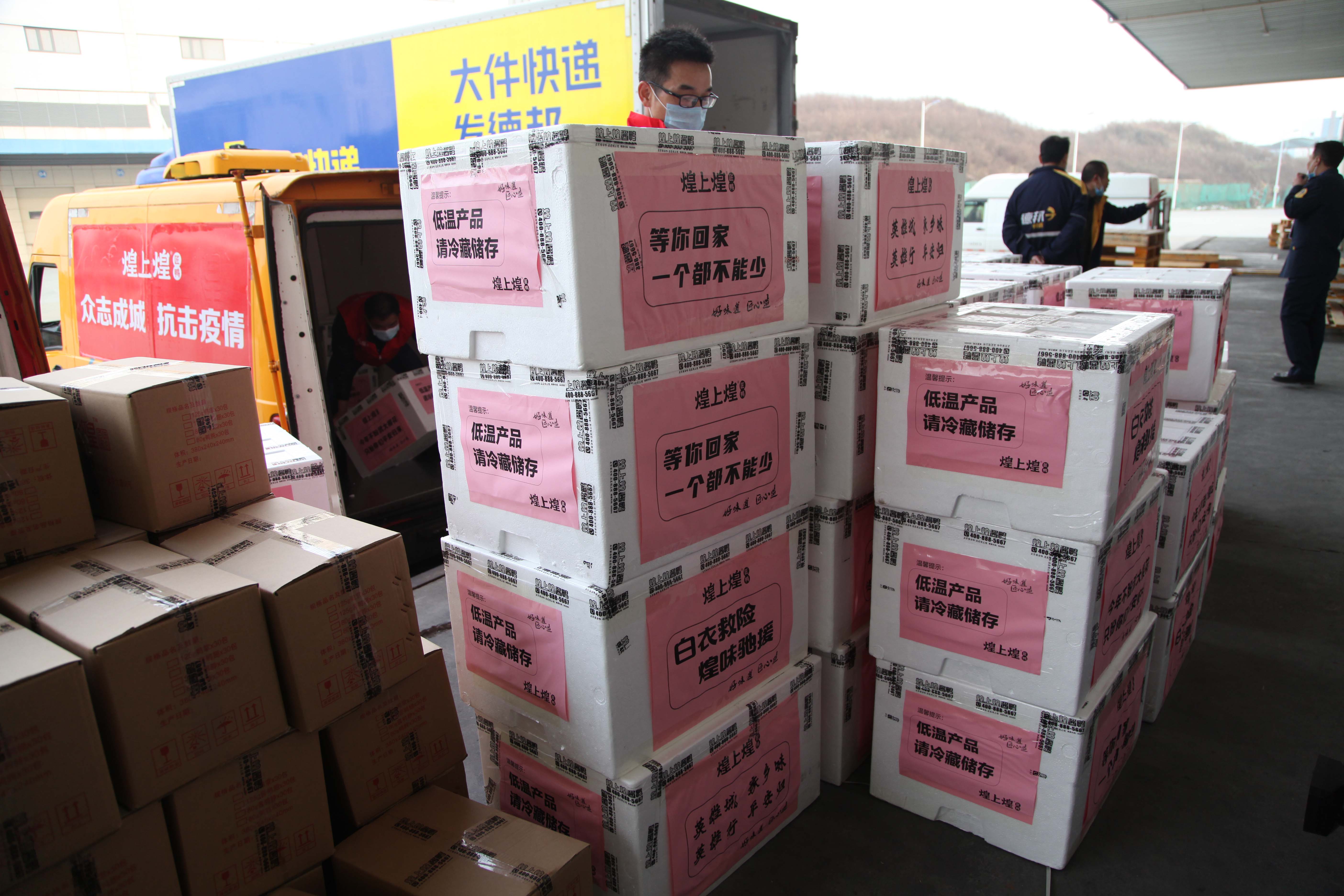 白衣天使吃到家鄉(xiāng)味道時(shí)露出的一張張笑臉,也被煌上煌記在了心里。隨后不久,煌上煌籌備了2000份樂鮮裝產(chǎn)品禮盒,附帶著煌上煌人親手寫下的祝福便簽,專車運(yùn)往湖北隨州,送至一線醫(yī)療隊(duì)員手中。之后,又與江西郵政攜手,馬不停蹄將第二批產(chǎn)品和物資送往武漢。