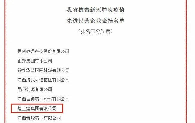 煌上煌集團(tuán)有限公司榮獲“抗擊疫情重大貢獻(xiàn)民營企業(yè)”榮譽(yù)稱號(hào)