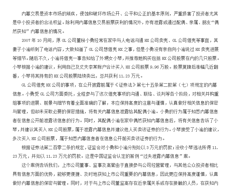內(nèi)幕交易是資本市場的頑疾,侵蝕和破壞市場公開、公平和公正的基本原則,嚴(yán)重?fù)p害了投資者尤其是...