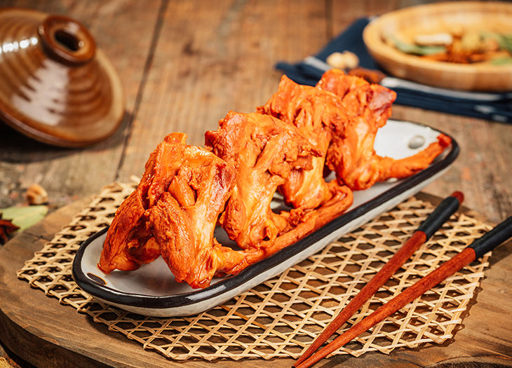 產(chǎn)品介紹:精選規(guī)格統(tǒng)一的鴨鎖骨,濃湯鹵制,使用多種調(diào)味料、紅油拌制調(diào)理,賦予產(chǎn)品具有豐富香氣和復(fù)合6性風(fēng)味。產(chǎn)品色澤金黃偏紅,鎖骨上的瘦肉絲絲細(xì)嫩,軟骨爽脆,硬骨易嚼碎且味濃。由于其積聚了咸、鮮、辣、甜、麻以及中藥和香辛料的芳香,是消費(fèi)用來休閑、佐酒、茶飲一道美食。