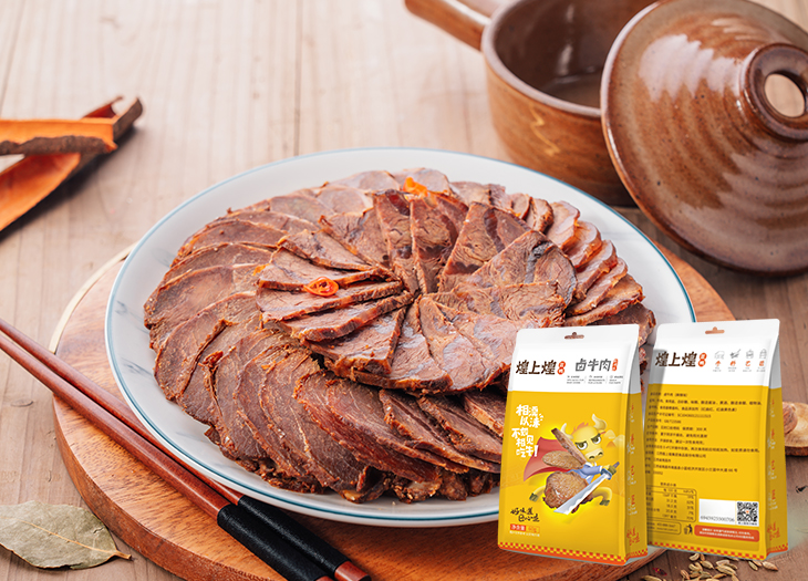 產(chǎn)品介紹:精選牛腿腱子肉,包膜完整,肌肉纖維質(zhì)堅而細,肌內(nèi)結締組織豐富具有彈性。采用新鮮牛骨和20多種香料熬制醬湯醬制,濃郁的醬香味里透發(fā)出牛肉固有的香氣。產(chǎn)品含水分量低,食之越嚼越香,食后唇齒留香就就不去。醬鹵牛腱蛋白質(zhì)含量,氨基酸組成比豬肉更接近人體的需要,具有提高機體抗病能力,強筋壯骨,滋養(yǎng)脾胃的作用。